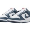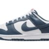 The Nike Dunk Low Valerian Blue arrives in a smooth white leather construction with deep Valerian Blue overlays and Swooshes. Hits of red on the woven tongue label and heel embroidery add a subtle contrast. At the base, a matching white and blue Air sole completes the design.
