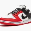 The NBA x Nike Dunk Low EMB ‘Chicago’ is a special edition colorway of the classic basketball and lifestyle shoe that celebrates the NBA’s 75-year anniversary. As its name implies, the ‘Chicago’ edition is inspired by the Chicago Bulls and its red, black, and white team uniform colors. The shoe features a crisp white leather base with contrasting Chile Red-colored leather panels on the toe cap, forefoot, and eyelets. Black leather can be found on the collar and heel, and on the Swoosh logo that appears on either side of the shoe. A red ‘Nike’ logo is stitched onto the heel. Unique branding celebrating the NBA’s 75-year anniversary appears on the tongue. A two-tone, white midsole and red rubber outsole complete the look. Release date: October 23, 2021