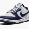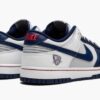 The NBA x Nike Dunk Low ’75th Anniversary – Brooklyn Nets’ is a special edition colorway of the vintage basketball shoe that celebrates the NBA’s 75-year anniversary. While nicknamed the ‘Brooklyn Nets,’ the shoe’s details and branding are indeed inspired by the team’s time in New Jersey. As the New Jersey Nets, the Eastern Conference basketball team featured navy blue and white as its primary uniform colors, and the two colors appear on its various overlays. The New Jersey Nets’ old school logo is found on the heel. Unique branding celebrating the NBA’s 75-year anniversary appears on the tongue and red ‘Nike’ detailing is embroidered on the heel. A two-tone, white midsole and blue rubber outsole complete the look. Release date: October 19, 2021