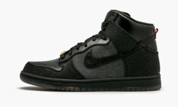 In 2008 Nike collaborated with Dave’s Quality Meat for a special pack of the Dunk High featuring perforated suede uppers in tonal colorways. This colorway’that’s even more limited than the rest of the pack and released in Tier Zero-level quantities’is featured in all black.