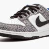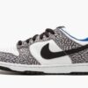 The Supreme x Nike SB Dunk Low ‘White/Cement’ is an all-time classic design from Supreme and Nike that was released in 2002. Looking to reenter the skateboarding footwear market back in the early aughts, Nike tapped into core skate shops with the lure of ultra-limited remakes of the classic Dunk model, a design that originated as a basketball shoe but eventually became popular for skateboarding. Supreme, of course, obliged, and put their spin on the silhouette by lovingly applying textured elephant print panels inspired by the iconic Air Jordan 3. A white premium leather base appears on the mid-panel with a black leather Swoosh on top. Both the perforated toe and ankle collar also use the soft white leather, as does the doubly-comfy padded tongue. Royal blue accenting appears on the inner liner while white embroidered Nike branding covers the heel. A durable white rubber midsole and a black outsole put the finishing touches on this amazing piece of footwear history.r