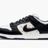 The Supreme x Nike SB Dunk Low ‘Stars – Black’ is a March 2021 collaboration between the New York City based streetwear and skate brand and Nike SB. The ‘Stars – Black’ is one of four premium colorways of the popular SB Dunk Low model imagined in the spirit of the Supreme and Nike SB collection of Dunk Highs from 2003. Like the 2000s release, the contemporary ‘Stars’ colorway finds metallic gold stars printed on the white leather mid-panel for a unique look. Moreover, Supreme reprises the faux crocodile-textured leather overlays and Swoosh branding found on the original ‘Stars’ design on the modern version of the shoe. A metallic gold Supreme emblem sits on the black laces of the white mesh tongue and a gold embroidered Nike logo is stitched onto the black heel tab on the back of the shoe. Release date: March 4, 2021.