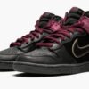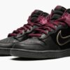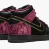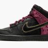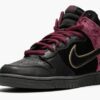 Said to be inspired by the U2 song ‘Sunday Bloody Sunday’, this Nike SB Dunk high features a crushed velvet heel in blood red and black with black leather for the rest of the upper. Gold accents finish off the theme.
