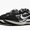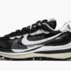 The sacai x Nike VaporWaffle ‘Black/White’ is one of two debut colorways of the hybrid silhouette that combines elements of Nike’s VaporMax and Waffle Racer runners. A Fall 2020 release, the sacai x Nike VaporWaffle in the ‘Black/White’ offering continues the high fashion house’s ‘double-layered’ approach that essentially does everything in ‘twos.’ This includes two Swooshes on either side of the black mesh mid-panel, black and white shoelaces, and a mesh and nylon stacked tongue with dual sacai and Nike detailing on the nylon tongue tag. The stealthy appearance of the shoe is enhanced by the black suede detailing on the eyelets, toe, and heel. Dual sacai and Nike insignia appear in black text on the white leather heel tab. The look is finished off with a stacked midsole that splits at the heel. Release date: Fall 2020.