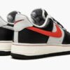 The NBA x Nike Air Force 1 Low ’75th Anniversary – Trail Blazers’ is a collaboration between the NBA and Nike on the throwback basketball shoe that celebrates the basketball league’s 75th anniversary. The ‘Trail Blazers’ Air Force 1 adopts a similar color scheme to that of the Portland Trail Blazers, a storied NBA franchise with championship heritage. The shoe’s white, grey, and red color block is reminiscent of the Trail Blazer’s team uniform colors. The perforated toe, toe cap, forefoot, and heel are designed in black tumbled leather. Nike arranges the mid-panel, eyelets, inner lining, and heel tab in grey leather. A red Swoosh appears on either side and red ‘Nike Air’ detailing is embroidered onto the heel. Special ‘NBA 75th Anniversary’ branding is printed on the nylon tongue tag. A cream-colored midsole with contrasting red ‘Air’ branding on the heel is paired with a black rubber outsole. Release Date: October 19, 2021