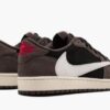 The Travis Scott x Air Jordan 1 Low is the low-top version of the world famous rapper’s Jordan 1 collaboration. Following the standard high-top Jordan 1 from spring 2019, this Jordan 1 Low by Travis Scott released in July in very limited quantities and achieved the same hype and coveted status as the first design. Scott once again displayed his affinity for earthy tones while also utilizing the same backwards Swoosh design as the initial high-top. The upper is constructed in premium nubuck with black and brown tones, while the large reversed Swoosh contrasts in white leather. Red highlights are found on the tongue tags and embroidered heel logos, while a Sail midsole completes the clean design.