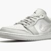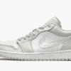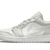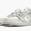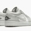 The Air Jordan 1 Low ‘White Camo’ is a versatile and desirable low-top version of Michael Jordan’s signature shoe with a subtle camouflage pattern. This refined look for the Jordan 1 Low features light grey tumbled leather overlays on the forefoot and eyelets. Contrasting white perforated leather appears on the toe and a smooth variant of the material covers the mid-panel. Branding, like the ‘White Camo’ leather Swoosh located on either side, as well as the mini black Jumpman embroidery the tongue and ‘Wings’ emblem on the heel, add classic styling to the Air Jordan 1.