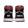 The Air Jordan 1 “Not For Resale – Red” released in 2018 as a special edition of Michael Jordan’s first signature shoe. The Jordan 1 features graphic messages across the shoe that encourage users to wear their pair. A tongue-in-cheek response to trends in sneaker culture, the shoe has text including ‘NOT FOR RESALE,’ ‘NO PHOTOS,’ ‘PLEASE CREASE,’ and ‘WEAR ME’ across the upper and midsole. Inside the Air Jordan 1, there are more messages, including ‘GENERAL RELEASE’ and ‘NO L’s.’ The Air Jordan 1 “Not For Resale – Red” sports a black, white, and red leather upper reminiscent of OG colorways of the legendary model.