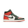 The SoleFly x Air Jordan 1 Retro High OG is a limited edition colorway by the sneaker boutique that released during Miami’s renowned art festival in 2018. Dressed in a premium leather construction with tones of orange, Sail, and dark green, the colorway is inspired by the colors of Miami. The iconic ‘Wings’ logo is embossed for a tonal look on each ankle, while an embossed SoleFly logo is present on each heel. Additional ‘MIA’ and ‘305″ callouts to the south Florida city are found on the interior of each tongue. Every pair comes with three sets of gold-tipped laces in colors that match the upper, and a metallic gold Jumpman keychain is also included. The SoleFly x Air Jordan 1 Retro High OG released in extremely limited quantities in December 2018.