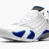 The Air Jordan 14 ‘Hyper Royal’ is a new yet OG-inspired colorway of Michael Jordan’s fourteenth signature model. Redesigned in ‘Hyper Royal,’ this Jordan 14 displays a similar color block to the ‘Cherry’ or ‘Chicago’ Air Jordan 14 in white and red. White perforated leather can be found on the mid-panel, heel, and tongue. Smooth white leather dots the toe, collar, and heel. A mini black Jumpman resides on the toe and a Ferrari-inspired Jumpman emblem on the collar. Additional detailing includes a ’23’ and Jumpman on the heel, as well as ‘JORDAN’ spelled out in blue lettering on the black nylon tongue tab. Hyper Royal midsole walls and a carbon fiber midfoot shank plate on the outsole complete the look of this shoe. Release date: September 19, 2020.
