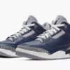 The Air Jordan 3 ‘Georgetown’ is a March 2021 release of Michael Jordan’s third signature shoe in a Georgetown Hoyas inspired colorway. Unofficially, the ‘Georgetown’ honors the college basketball powerhouse by employing the team’s uniform colors in its design. The look references many of the Player Exclusive ‘Georgetown’ colorways given to members of the Hoya family by Jordan Brand. Details include a Midnight Navy tumbled leather upper with contrasting dotted Cement Grey leather panels on the eyelets, collar, and tongue. Classic elephant print appears on the heel and toe as per the original styling of the Air Jordan 3. Additional design cues include a navy blue embroidered Jumpman on the grey leather tongue, white laces, and a white Jumpman on the heel. A visible Air unit in the heel of the white midsole completes the look of this ‘Georgetown’ edition of the Jordan 3. Release date: March 20, 2021.