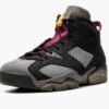 The Air Jordan 6 ‘Bordeaux’ is a special colorway of Michael Jordan’s sixth signature shoe that’s dressed in a familiar color scheme to another iconic Air Jordan style. The shoe in question is the Air Jordan 7 ‘Bordeaux,’ an original colorway of the retro performance basketball shoe worn by Michael during the 1991-92 NBA season with the Chicago Bulls. Released in September 2021, the modern ‘Bordeaux’ is part of the Air Jordan 6’s 30-year anniversary. The upper is complete with a grey synthetic nubuck base that features perforations on both sides. Contrasting black overlays break up the look. Bordeaux accenting comes into play on the neoprene tongue with black Jumpman branding and on the spoiler on the heel. ‘Air Jordan’ detailing is found on the semi-translucent tongue tab. A black Jumpman is embroidered on the heel. The signature geometric pattern of the Jordan 7 is found printed on the inner side of the tongue. True to the original Air Jordan 6, a visible Air bubble can be found in the heel of the grey and black midsole. Release date: September 4, 2021