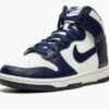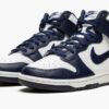 The Nike Dunk High ‘Championship Navy,’ also known as the ‘Midnight Navy,’ is a two-tone, navy-and-white colorway of the vintage basketball shoe that salutes the Villanova Wildcats. An original style of the Dunk from the college basketball-inspired ‘Be True to Your School’ collection from 1985, the ‘Championship Navy’ appears in the team uniform colors of the Wildcats, and is a classic Dunk release. The upper features white leather on the perforated toe, mid-panel, collar, and heel. Contrasting navy blue leather is found on the overlays and Swoosh. The ‘Nike’ and Swoosh branding on the nylon tongue appear in Championship Navy, as does the laces layered over the white nylon tongue and the rubber outsole underneath the white midsole. Release date: October 8, 2021