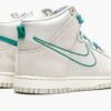 Light grey suede/leather Dunk High SE “First Use – Green Noise” sneakers from NIKE featuring signature Swoosh logo detail, contrasting panel detail, round toe, perforated detailing, front lace-up fastening, logo patch at the tongue, ankle-length, branded insole and rubber sole. These styles are supplied by a premium sneaker marketplace. Stocking only the most sought-after footwear, they source and curate some of the most hard to find sneakers from around the world..