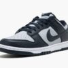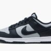 The Nike Dunk Low ‘Georgetown’ is an semi-original colorway of the retro basketball shoe from Nike’s college basketball-inspired ‘Be True to Your School’ collection of Dunks from 1985. We ay “semi-original” because the grey-and-navy color scheme originally appeared on the Nike Terminator from the same era as the original 1985 set of Dunks. For this ‘Georgetown’ Dunk Low, grey leather appears on the perforated toe, mid-panel, collar, and heel. The forefoot, eyelets, collar, heel, and Swoosh are dressed in Midnight Navy leather. Grey ‘Nike’ branding is embroidered on the back and printed on the navy blue tongue tag with a Swoosh logo. Finishing touches include Midnight Navy laces, a white rubber midsole, and a navy blue outsole. Release date: November 5, 2021