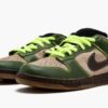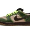 The Nike SB Dunk Low Pro ‘Jedi’ is a classic SB Dunk colorway from 2004 inspired by Star Wars. Sans any official affiliation to the popular film franchise, the ‘Jedi’ is nonetheless inspired by Yoda, the wise and powerful Jedi master who famously helped Luke Skywalker unlock his Jedi powers. Design wise, khaki colored suede can be found on the perforated toe, mid-panel, and collar. Supple green leather overlays with bright neon green, lightsaber-style contrast stitching appear on the forefoot, eyelets, collar, and heel. Nike SB places a Baroque Brown Swoosh on either side. Embroidered ‘Nike’ detailing can be found on the back and ‘Nike SB’ insignia on the nylon tongue tag. The ‘Jedi’ features a puffy black mesh tongue and a drop-in Zoom Air cushioning bag in the heel of the midsole. One of the most sought after Nike SB Dunks ever, the ‘Jedi’ is a time travel back into Nike SB’s early-aughts glory years.