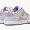 The Union x Nike Dunk Low ‘Hyper Royal’ is a collaboration between Chris Gibbs’s Los Angeles fashion boutique and Nike on the vintage basketball shoe. Perhaps best known for its Air Jordan collaborations since the 2010s, Union LA’or just Union for short’is a longtime partner of Nike, having worked with the brand in various instances dating back to the early 2000s. Here, the ‘Hyper Royal’ is one of three colorways of the Dunk from Union’s 2022 collaboration with Nike. The shoe features a gridded, ripstop-nylon-like material on its light blue upper. Each overlay is outlined in orange. A small yellow ‘UN/LA’ hang tag appears on the lateral side of the midfoot overlay and the brand’s ‘Halo’ skateboarding logo is found on the heel and the forefoot of the outsole. The shoe features additional hang tags that allude to baggage claim tags. Underfoot, a white rubber midsole is paired with an icy, semi-translucent outsole.
