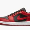 The Air Jordan 1 Low ‘Reverse Bred’ rearranges the classic ‘Bred’ color scheme on Michael Jordan’s first signature model in low-top height. The famous ‘Bred,’ or black and red, colorway was one of several original makeups of the Jordan 1 worn by Michael during the early stages of his time with the Chicago Bulls. Years after its release, it still shines as one of the very best Air Jordan designs ever. This ‘Reverse Bred’ flips the look by employing black leather on the perforated toe and mid-panel. Red leather overlays appear on the forefoot, eyelets, collar, and heel. Branding appears in the form of a red leather Swoosh on either side, black embroidered ‘Wings’ detailing on the heel, and a mini red Jumpman stitching on the black nylon tongue. Tonal laces and a black liner add depth to the design. As a whole, the Air Jordan 1 Low ‘Reverse Bred’ is reminiscent of the ‘Varsity Red ’85’ colorway used on the Jordan 1 High.