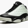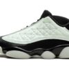 The Air Jordan 13 Low ‘Singles Day’ is a November 2021 release of Michael Jordan’s thirteenth signature shoe in a colorway dedicated to the light-hearted, unofficial holiday of people not in relationships. Singles Day originated in China in the early ’90s before becoming global in the 2010s. Landing on November 11th, or 11u002F11, Singles Day is also recognized as the biggest online shopping day in the world. As for the colorway, Jordan Brand arranges the low-top version of the vintage basketball shoe with a Barely Green leather upper that features a triangular geometric design. ‘Matrix’ style ‘Air Jordan 0023,’ ‘Air Jordan 2021,’ and ‘1111’ within the mint green leather design are made visible with glow-in-the-dark accenting. A black Jumpman emblem appears on the collar, a Barely Green Jumpman is embroidered on the black nylon tongue, and ‘Jordan’ text appears on the vamp. A black midsole contrasts the mint green rubber outsole. Release date: November 11, 2021