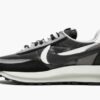 The sacai x Nike LDWaffle ‘Black’ is a colorway from the second wave of releases for the hit silhouette by the high-fashion house and the Swoosh. The avant-garde design combines two vintage Nike running shoes from the brand’s early days, the LDV and Waffle Racer, into an eye-catching layered design that even stacks two midsoles on top of each other. Following the initial two colorways of the unique double-layered design by sacai that dropped in spring 2019 and became an instant hit, this ‘Black’ edition released in the fall of 2019. Going for a more neutral approach than the model’s multicolor looks, this colorway features a black, grey, and white combination for the mesh, leather, and suede construction.