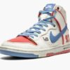 Sail/university blue/red leather x Ishod Wair x Magnus Walker SB Dunk High sneakers from NIKE featuring distressed effect, number patch to the rear, signature Swoosh logo detail, perforated, panelled design, round toe, front lace-up fastening, ankle-length, rubber sole and Release date: June 21, 2021. These styles are supplied by a premium sneaker marketplace. Stocking only the most sought-after footwear, they source and curate some of the most hard to find sneakers from around the world..