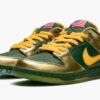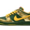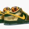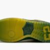 The Doernbecher x Nike SB Dunk Low ‘Joey Bates’ is a sneaker that was part of the 2018 Doernbecher Freestyle Collection from the Portland, Oregon children’s hospital and Nike. The annual collection of footwear designed by patients at the hospital included this Dunk Low by Joey Bates, who suffers from muscular dystrophy. Joey’s eye-catching design features a dark green and gold color combination that takes inspiration from his favorite football team, the Green Bay Packers. His favorite food, chicken, also makes an appearance on the shoe, while American flags are found on the tongue tag, and his name is spelled out on the heel tabs. The number 52 can be seen under the clear rubber outsoles, which is a reference to Joey’s favorite player on the Packers, Clay Matthews. The limited edition Doernbecher x Nike SB Dunk Low ‘Joey Bates’ released in December 2018.