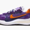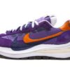 The sacai x Nike VaporWaffle ‘Dark Iris’ is a Spring 2021 collaboration between Chitose Abe’s avant garde fashion label and Nike on the hybrid silhouette. In late 2020, sacai and Nike released its first VaporWaffle, a low-top shoe that combines design elements of Nike’s Vaporfly and Air Pegasus ’83’s performance runners. Like its previous collaborations on the Blazer Mid and LDWaffle, sacai’s VaporWaffle does everything in ‘twos.’ It should be noted that the upper of the ‘Dark Iris’ features a new nylon construction in comparison to the original mesh-based build the model previously employed on colorways like the ‘Villain Red.’ A mixture of light and dark purples appear on the aforementioned nylon mid-panel and collar and on the suede toe. Painted purple Swoosh logos are layered beneath the orange leather Swoosh on either side of the shoe. The same hue of burnt orange leather appears on the heel tab with dual sacai and Nike branding. Oversized navy blue and white laces are placed over the layered purple and white nylon tongues. The stacked midsole splits at the heel in a shape reminiscent of the Vaporfly. Release date: Spring 2021.