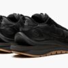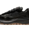 The Sacai x Nike VaporWaffle “Off Noir’ is a monochromatic black colorway of the collaboration between Chitose Abe’s high fashion brand and Nike on the silhouette that combines elements of the Nike VaporFly and Pegasus ’83. The Sacai co-designed VaporWaffle was originally released in 2020 and offers a high fashion-meets-sportswear aesthetic that’s central to Sacai and Nike’s footwear collaborations. On the ‘Off Noir,’ the shoe is constructed with a black nylon base with tonal suede overlays on the toe cap and eyelets. Like Sacai and Nike’s previous collaborations, the design features a ‘double-layered’ approach that essentially does everything in ‘twos.’ This includes two Swooshes on either side, two pairs of black shoelaces, and stacked nylon tongues with dual Sacai and Nike detailing on the tongue tag. Dual Sacai and Nike insignia appear in black text on the white leather heel tab. The look is finished off with a stacked midsole that splits at the heel. Release date: March 10, 2022
