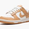 The Women’s Nike Dunk Low ‘Harvest Moon’ is a women’s-only version of the vintage basketball and lifestyle shoe in an earth tone colorway. A January 2022 release, the ‘Harvest Moon’ is a versatile color option for the Dunk sneaker that features a white leather base with contrasting Harvest Moon-colored leather overlays. The Swoosh branding that appears on either side of the shoe is designed in light brown to match the aforementioned panels, as is the leather heel tab with ‘Nike’ branding. The Harvest Moon nylon tongue tag features white ‘Nike’ and Swoosh branding. A two-tone, white midsole and light brown rubber outsole round out the look. Release date: February 2, 2022