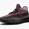 The adidas Yeezy Boost 350 V2 ‘Yecheil’ is a unique multi-color edition of Kanye West’s popular lifestyle shoe. The late 2019 release features colorful hues woven into the breathable Primeknit upper, which makes the ‘Yecheil’ one of the boldest takes yet on the Yeezy Boost 350 V2 series. Sporting a black Primeknit base, the design takes on a ‘split’ appearance with the outside of the shoe featuring hues of blue, red, pink and yellow while the medial side features a more simplified two-tone knit weave of black and light pink. A solid black stripe runs across the lateral side in translucent monofilament to contrast the intricate coloration. Rounding out the design is a blacked out midsole that houses the Yeezy 350 V2’s ample Boost foam cushioning. The Yeezy Boost 350 V2 ‘Yecheil’ released on December 20, 2019.