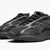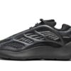 The adidas Yeezy 700 V3 ‘Dark Glow’ is a mostly monochromatic black colorway of the evolutionary shoe by Kanye West and adidas that was released in August 2021. Included in West’s Yeezy Day celebration, the ‘Dark Glow’ is similar to the ‘Alvah’ colorway that adidas debuted in April 2020, save for the newly implemented glow-in-the-dark RPU overlays layered over the ‘Dark Glow’s’ black Primeknit base. Contrasting grey monofilament stripes appear on both sides of the knit upper. Underfoot, adidas replaces the Boost cushioning found in many 700 styles for a lightweight EVA foam composition. Release date: August 2, 2021